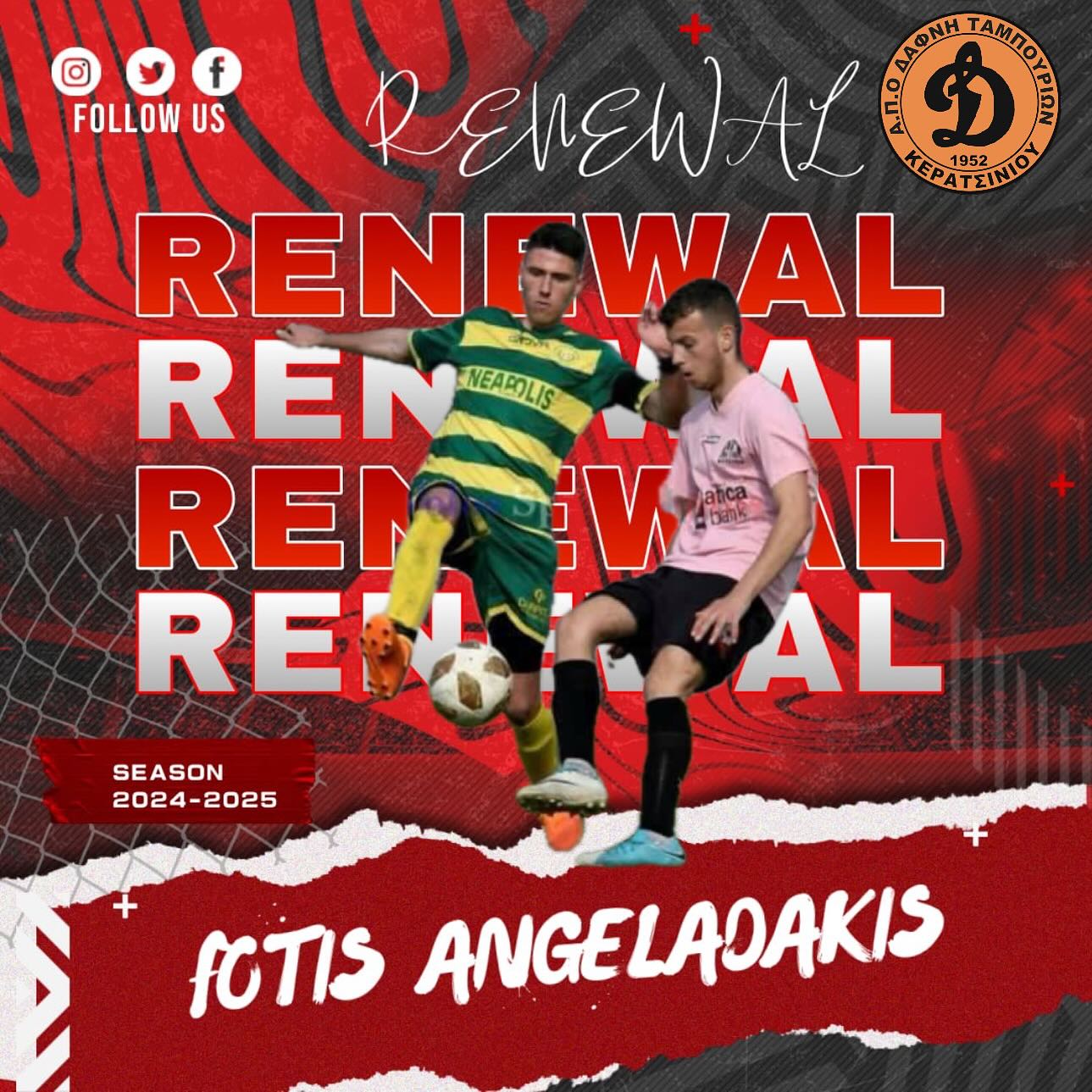 Είμαστε στήν ευχάριστη θέση να ανακοινώσουμε την επέκταση συνεργασίας με τον 24 χρόνο Αμυντικό Χάφ Αγγελαδακη Φωτη για την χρόνια 2024-2025