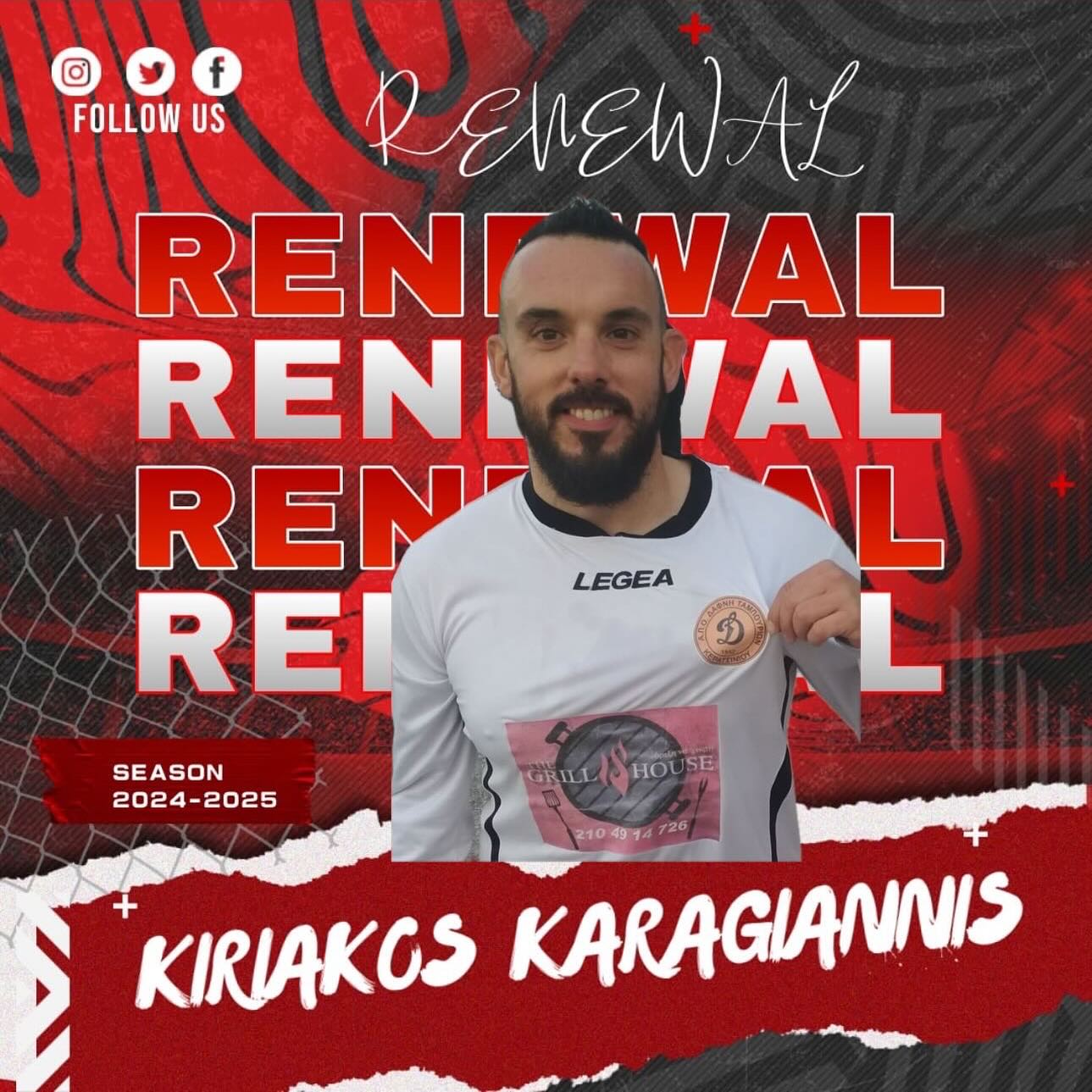 Είμαστε στήν ευχάριστη θέση να ανακοινώσουμε την επέκταση συνεργασίας με τον αρχηγό της ομάδας μας Καράγιαννη Κυριακο για την χρόνια 2024-2025 Ευχόμαστε υγεία και πολλές επιτυχίες !